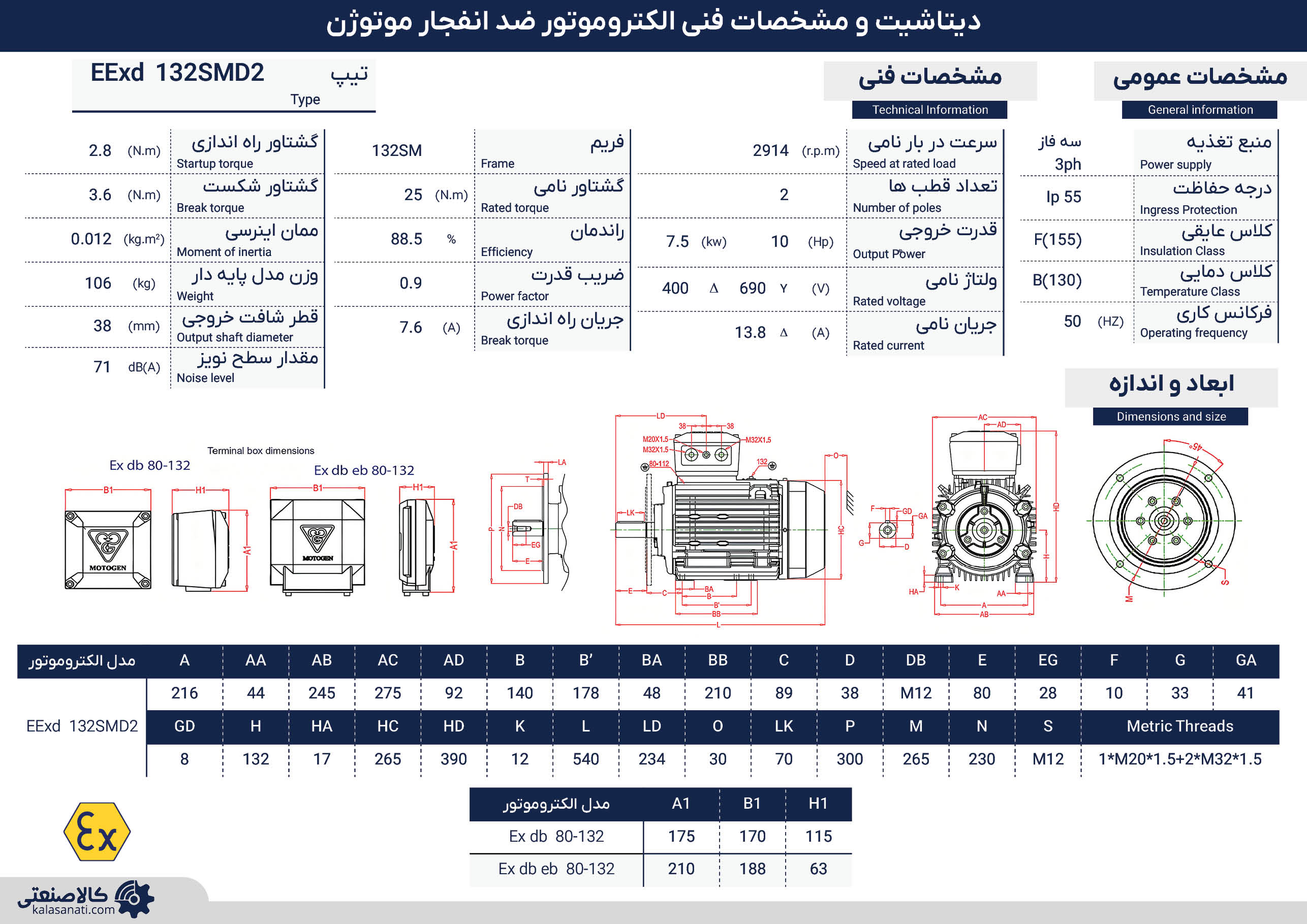الکتروموتور ضد انفجار موتوژن سه فاز 10 اسب 7.5 کیلووات پوسته چدنی 3000 دور