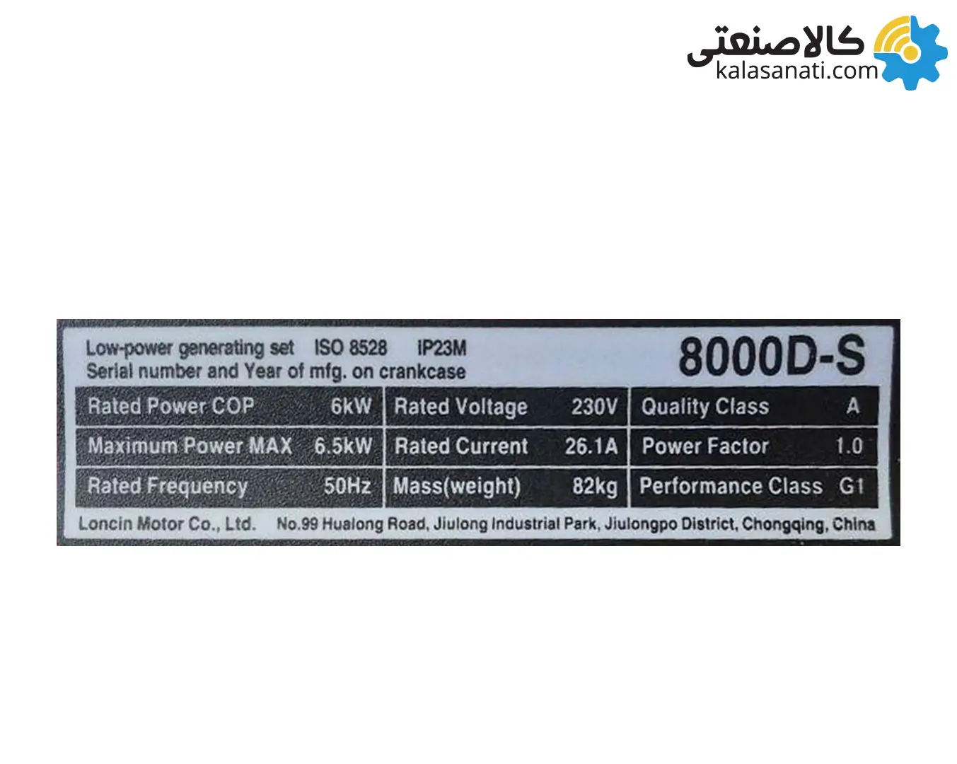 موتور برق بنزینی استارتی تک فاز 6.5 کیلووات لانسین LC8000D-S
