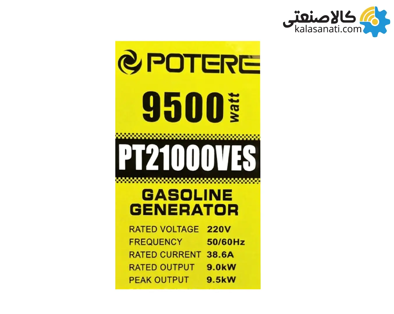 موتور برق بنزینی استارتی تک فاز 9.5 کیلووات پوتر PT21000VES